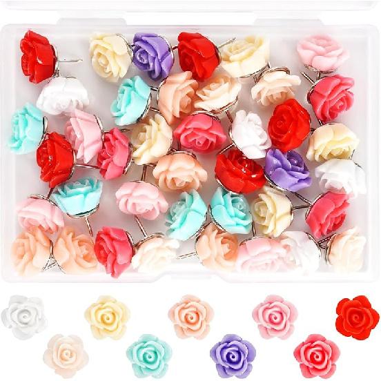 40 PCS Decorative Push P, Thumb Tacks for Bulletin Board, Cute Thumbtacks, Colorful Flower Pin Tacks for Cork Board Map Photo Poster Calendar