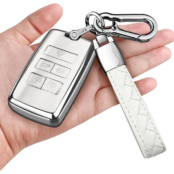 Sindeda for Land Rover Key Fob Cover with Keychain Soft Full Protection Key Shell Key Case Compatible with 2018- Land Rover Range Rover Evoque Vogue
