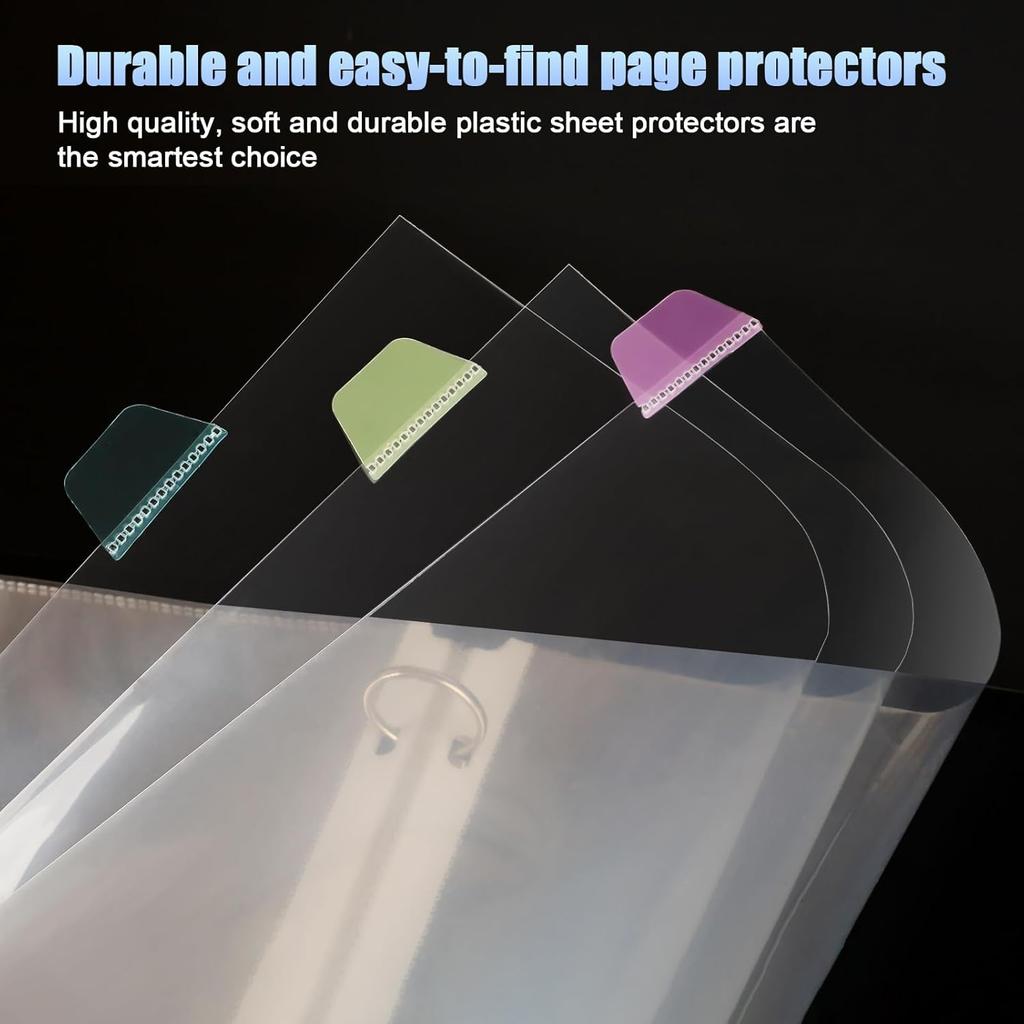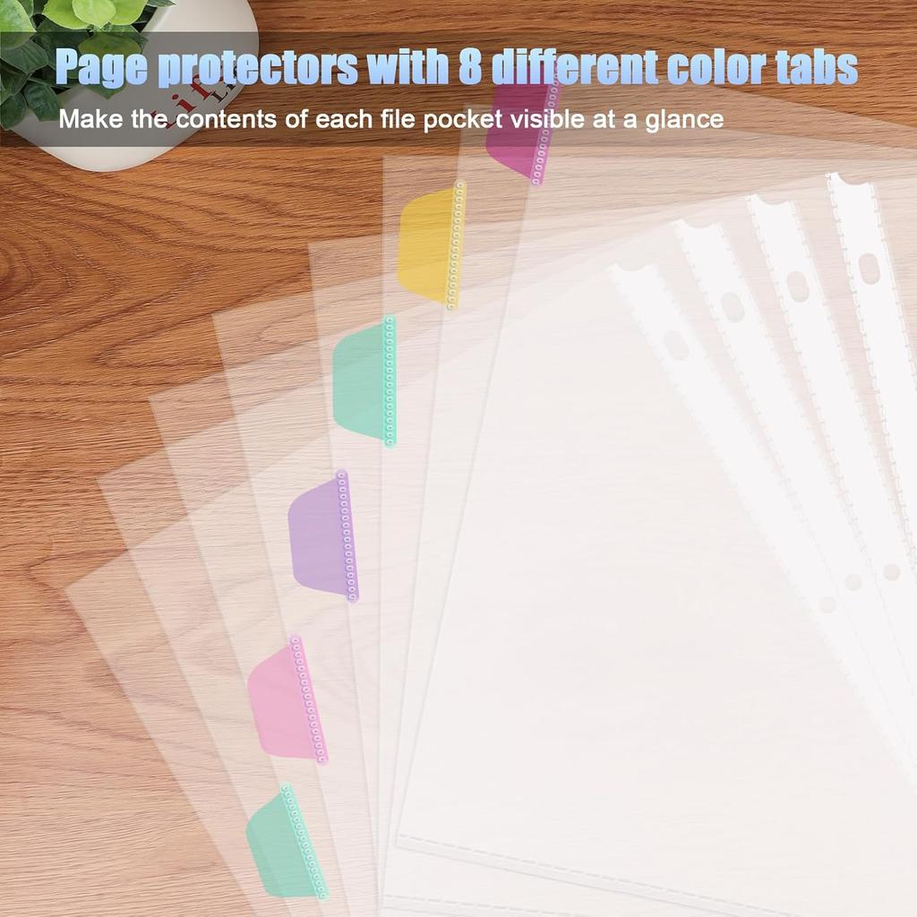 HABGP16PCS/2 Set 3 Ring Clear Binder Dividers with Tabs, 8.5 x 11 8 Tabs Binder Dividers with Pockets, Clear Page Protectors Index Dividers for 3