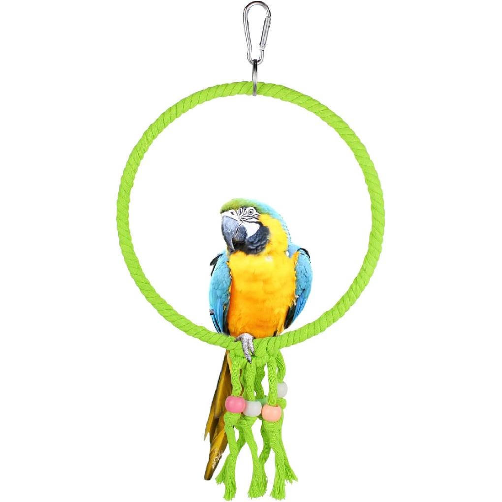 Bird Swing, 20 CM Diameter Hanging Parrot Swing with Colourful Beads, Swing Parrot Toys Cotton Rope Ring Bird Cage Toys for Budgie, Cockatiel,