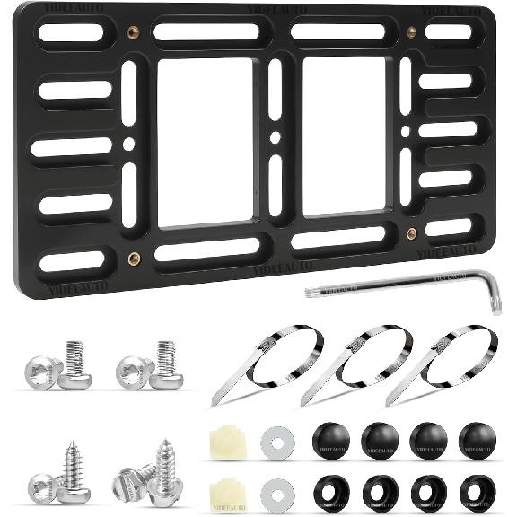 Front License Plate Mount - No Drill Licence Plate Bracket Holder, Universal Bumper Car Tag Frame Mounting Kit for Most Cars, Trucks & SUVs