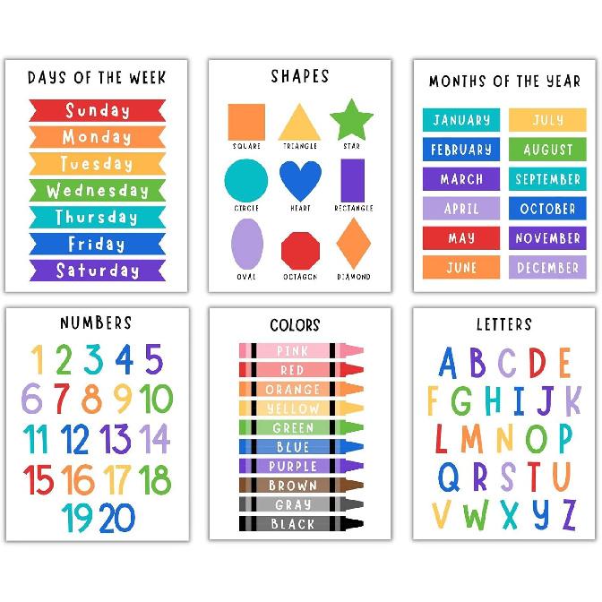 Образовательные плакаты для малышей и детей – 11"×14" Алфавит, Цифры, Цвета, Формы, Дни недели и Месяцы – Обучающие настенные диаграммы