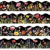 60 Pcs Floral Bulletin Board Borders Black Wild Flower Scalloped Self-Adhesive Border Trim Sticker Decals for Home Classroom Spring Party Wall