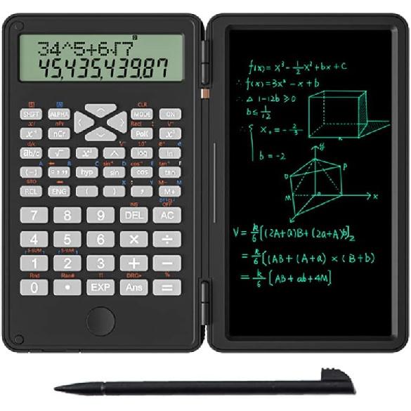 Scientific Calculator with Notepad: 6-inch large screen writing pad with and a stylus on the side of flip place, which can effectively save your pen and paper, and you can calculate and record what you want.