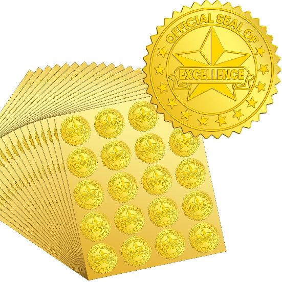 Kosiz 500 Pcs Official Seal of Excellence Embossed Gold Foil Certificate Seals 1.5 Inch Self Adhesive Gold Achievement Award Stickers for Graduation