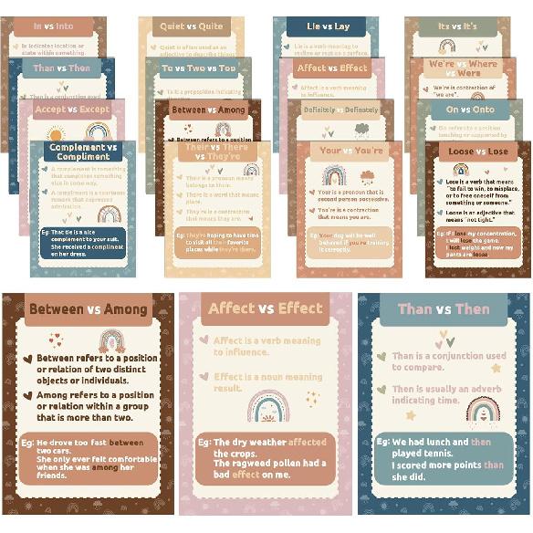 Pajean 16 Часто Путаемых Слов Постер 14 x 11 Дюймов Таблицы Омофонов Декорации для Класса Английского Языка Постеры по Грамматике для Учителя Английского