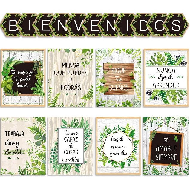 gisgfim 19 Pieces Bienvenidos Spanish Posters Spanish Motivational pirational Banner with Adhesive Dots for Kids Students Teacher Classroom