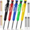 Hiboom 5 Pcs Mechanical Carpenter Pencil, 30 Pcs Refills Needle Nose Tip Hole Marker with Built in Sharpener, Scribe Making Tools for Woodworking,