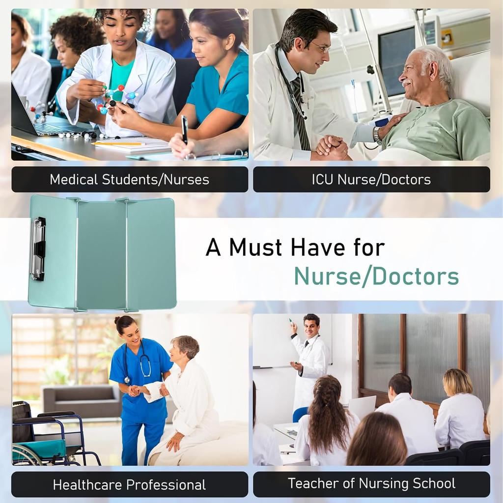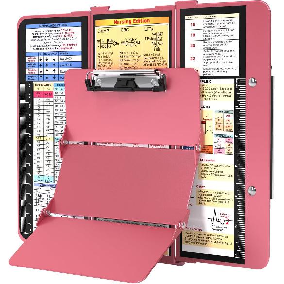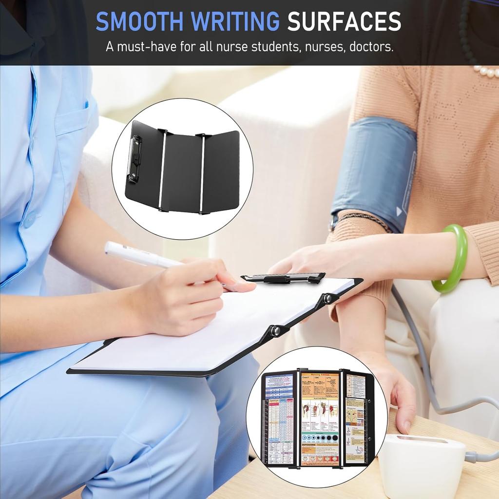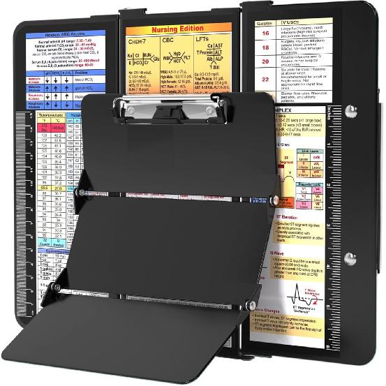 Nursing Clipboard Foldable, Foldable Clip Board w/Nursing Edition Cheat Charts, 3 Layers Aluminum, Nurse Clipboards w/Low Profile Clip & Pen Clip