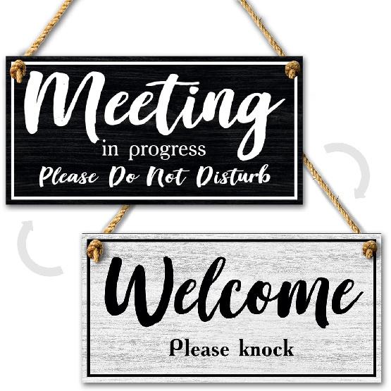 Meeting in Progress Door Sign, 10x5 Dibond Do Not Disturb, Hanging Welcome Please Knock Sign for Door