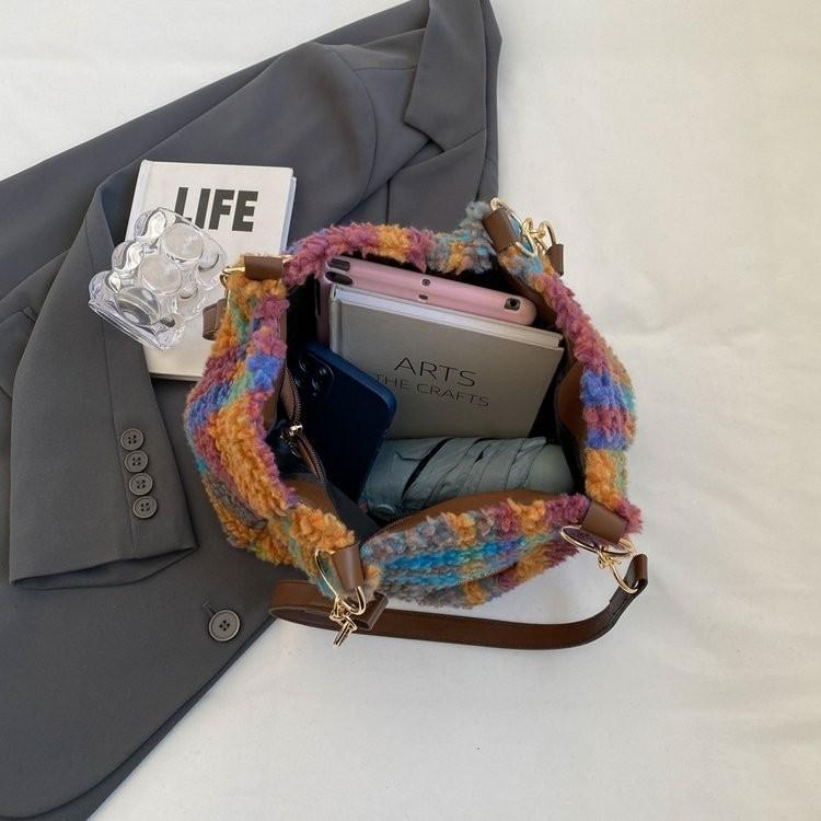Stylish Red Purple Green Plaid Women's Canvas Shoulder Bag Perfect For Fall And Winter Outings