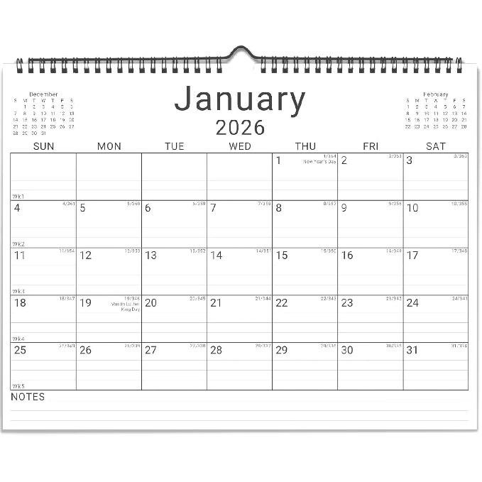 2026 Wall Calendar, 12 Month 11”x8.5 ‘’ Year Monthly Organizer from January 2026-2027 Small Mini Horizontal Blank Spiral Bound Wire Hanging
