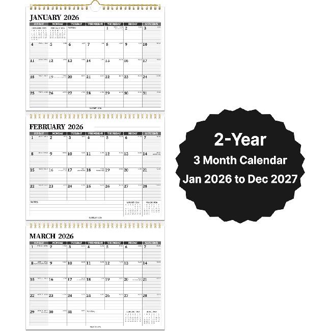 Настенный календарь 2026-2027, 3-месячный вертикальный, с перелистывающимися страницами, на 2 года с января 2026 по декабрь 2027, 11'' x 25'', Большой месячный подвесной — купить товар онлайн с бесплатной доставкой по всему миру!