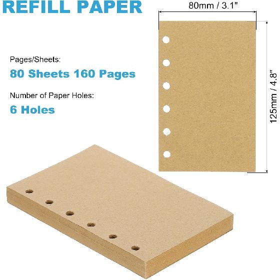 PATIKIL A7 Refill Paper, Unlined Blank Kraft Paper Refillable Paper 6 Hole Filler erts Loose Leaf Paper for 6 Ring Binder, 80 Sheets/160 Pages, Beige