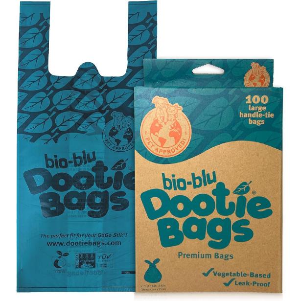 Bio-Blu Dootie Bags®, Premium Medium-Large, E-Z Tie Handle Poop Bags, Made with Superior Material, Strong, Leak Proof, 100 Count. Fits GoGo Stik ST