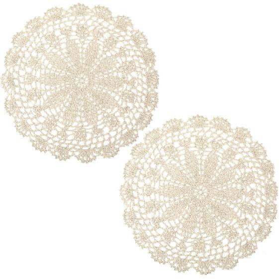 Crochet Doilies for Tables, 2 Pcs Beige Round Doilies for Furniture Vintage Handmade Lace Placemats Corrugated Edge Knitted Tablecloth for Home