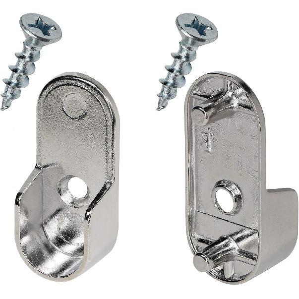 Rok Hardware Chrome 1-3/16" (30 mm) x 19/32" (15mm) Oval Closet Rod End Support with 3/16" (5mm) P 30X15X5MMCH (2 Pack)