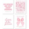 FGFK Girly Pink Christian Wall Art Prints Set of 4, Lamentations 3:23 Psalm 16:11 Psalm 27:1 Bible Verse Preppy Posters Pictures Wall Decor for Girls