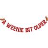 A Weenie Bit Older Banner - Hot Dog Birthday Decor, Retro BBQ Cookout Theme Birthday Party Decorations Red Glitter