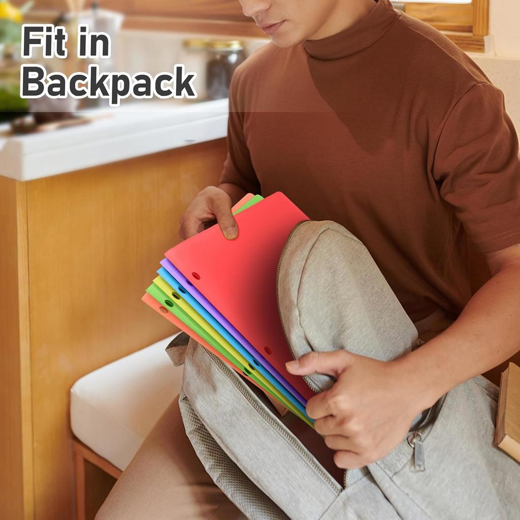 Timart Folders with Pockets 3 Hole Punched-6 Pack, 2 Pocket Heavy Duty Plastic Pocket Folders for 3 Ring Binder, Fit Letter Size File Folder for