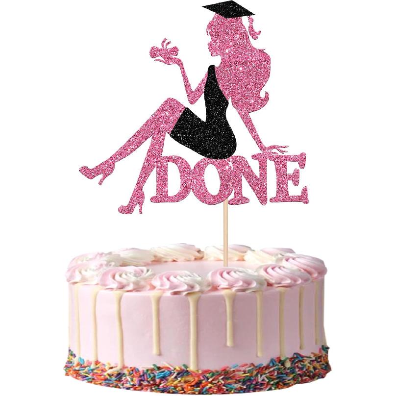 1 PCS High Heel Girl Graduation Cake Topper Black Pink Glitter Done Diploma Class of 2025 Congrats Grad Cap Cake Pick for 2025 Senior High School