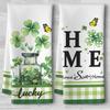 St Patricks Day Luck Green Kitchen Towels - Shamrock Wreath Quick-Dry Embroidered 'Lucky' Centerpiece Art, Irish-Themed Decorative Hand Towel for