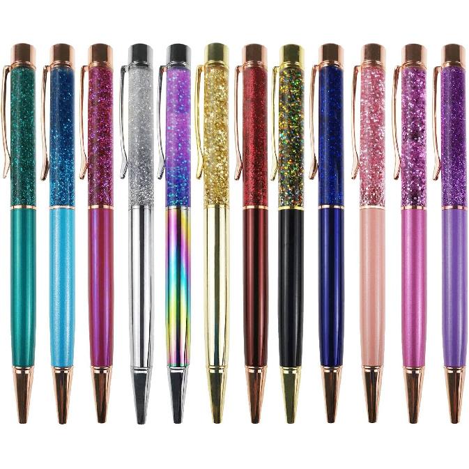 Fancy Metal Ballpoint Pens Floating Glitter Dynamic Liquid Sand Pen for Office Supplies, Black Ink, 12 Count(Mixed Color)