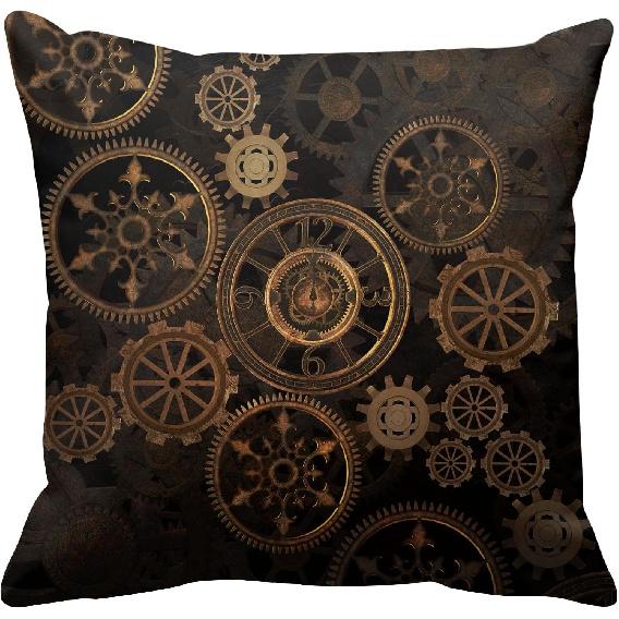 Emvency Throw Pillow Cover Square 16x16 Inches Steampunk Steam Punk Gears Clock Abstract Gold Technology Vintage Bronze Century Polyester Decor