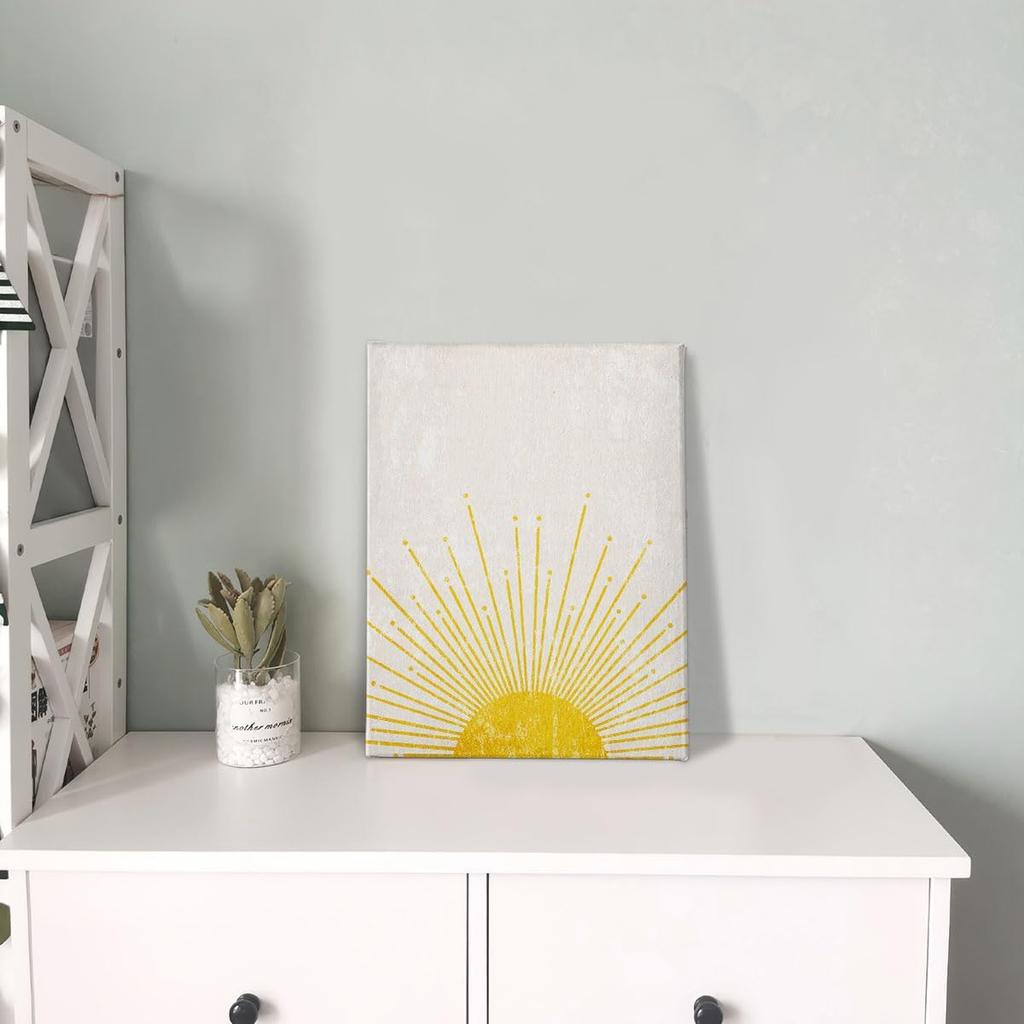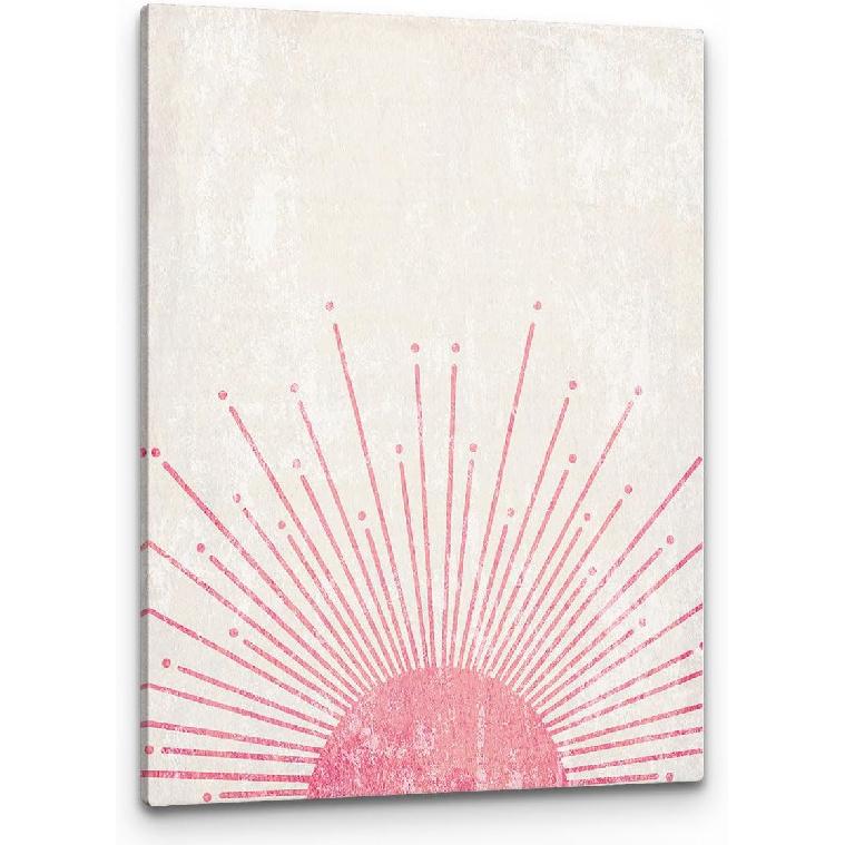 PHAMTE Abstract Boho Green Sun Wall Art, Rustic Boho Sunset Sunrise Sunshine Sun Rays Print Framed Canvas Painting Artwork for Home, Bathroom, Girls