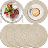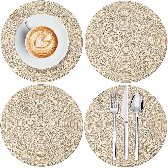 7 Inch Round Braided Placemats Set of 4,Coffee Mat,Table Mats,Washable Heat Resistant Cotton Polyester Circle Place Mats for Kitchen Dinner Party