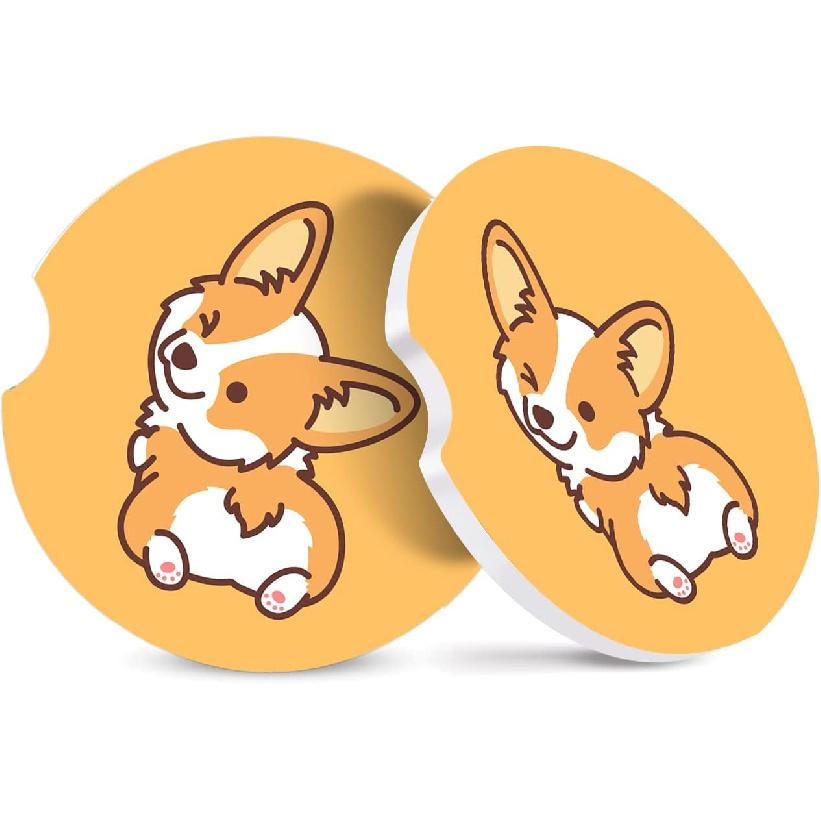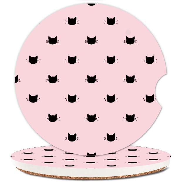 Absorbent Car Cupholder Coaster 2 Pack, Cute Car Coasters with a Finger Notch for Women & Men,2.56" Ceramic Stone & Non-Scratch Cork Base Drink