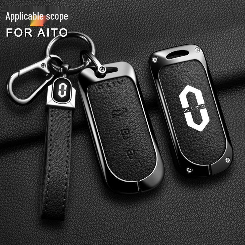 Huawei AITO M7/M5/M5ev Key Case: Genuine Leather Full-Coverage Key Shell & Buckle — купить товар онлайн с бесплатной доставкой по всему миру!