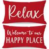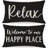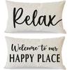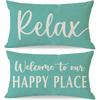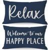 Welcome to Our Happy Place Relax Decorative Throw Pillow Covers 12x20 Inch Set of 2 Orange Outdoor Farmhouse Spring Fall Decor Lumbar Cushion Case