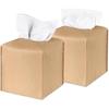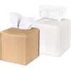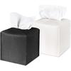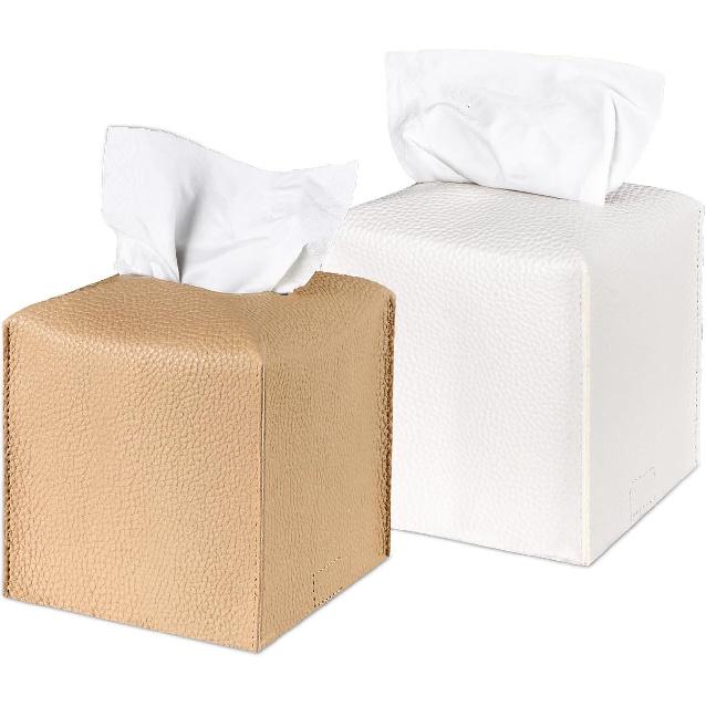 Tissue Box Cover, 2 Pack Beige & White Square PU Leather Tissue Box Holder Decrative Tissue Cube Organizer for Tabletop, Bathroom, Car, Office