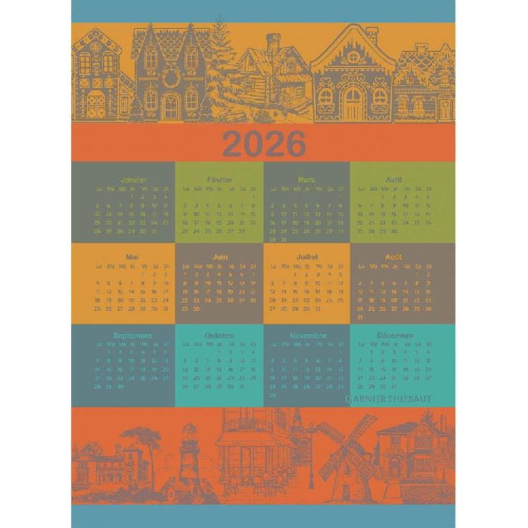 Garnier Thiebaut Calendrier 2026 Celebration French Kitchen Towel 22"x31", Cotton, Jacquard