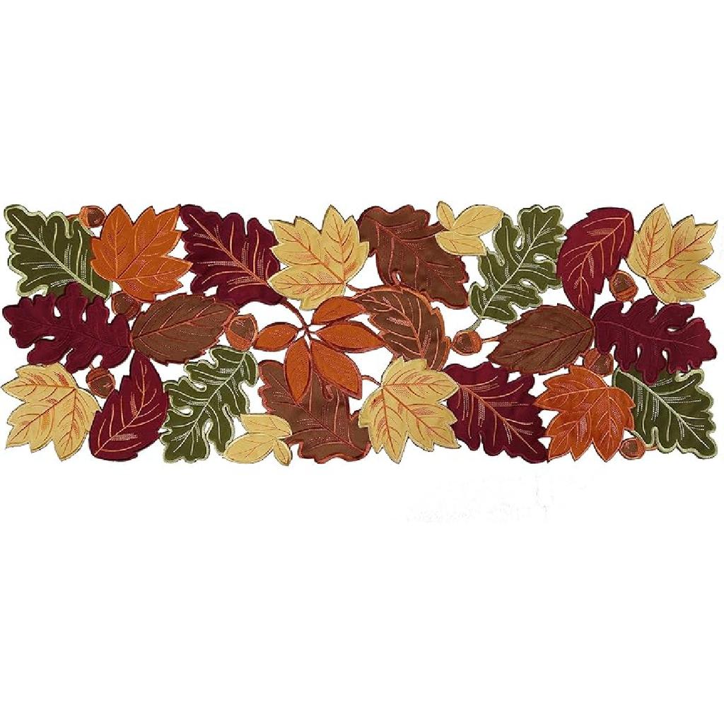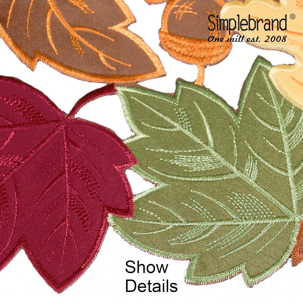Simplebrand Harvest Fall Table Runner 36 Inches Long for Thanksgiving, Cutwork with Applique Embroidered Maple Leaves Dresser Scarf Table Topper for