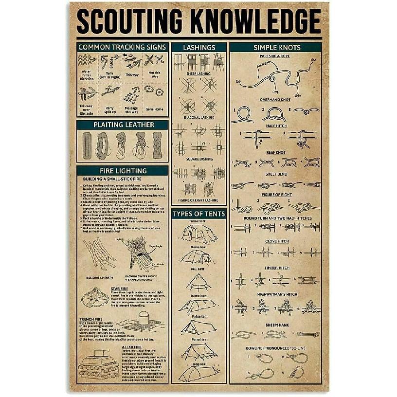 Krouterebs Funny Tin Sign Scouting Knowledge Poster for New Boy Scout Vintage Cute Metal Sign Gift Bedroom Retro Novelty Cafe Store 12x8 Inch