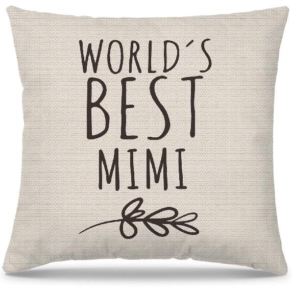 Mimi Gifts Pillow Covers 18x18, Best Grandma Gifts for Mother's Day Birthday from Grandkids, World's Best Mimi Decorative Throw Pillow Cover for Home