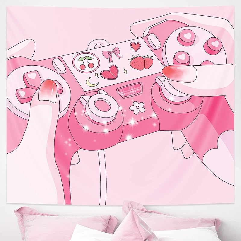 Pecfamly Cutecore Декор комнаты - Розовый аниме-гобелен - Кавайные постеры - Декор комнаты для девушки-геймера - Игровой гобелен