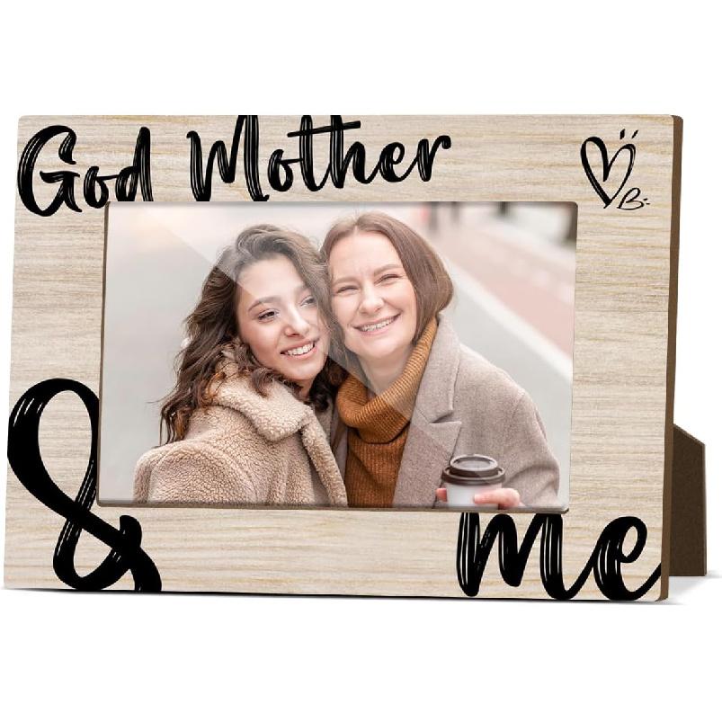 Godmother Frame Wooden Picture Frames 4x6 Picture Display for Desk Godparents Gifts for Baptism Horizontal Pictures Frames Small Photo Display God
