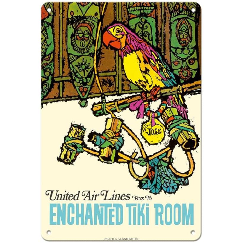 Pacifica Island Art Enchanted Tiki Room - United Air Lines - Vintage Airline Travel Poster by James Jebavy c.1968-8 x 12 inch Vintage Metal Tin Sign — купить товар онлайн с бесплатной доставкой по всему миру!