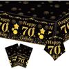 50th Black Gold Birthday Tablecloths Plastic Disposable 2 Pack Table Cloth Happy Party Birthdays Decorations Rectangular Table Cover 54"x108"