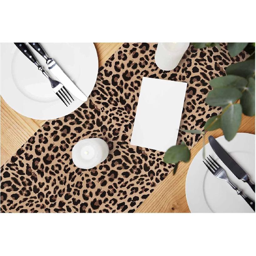 HOSNYE Table Runner Brown Leopard Pattern,Cotton Linen Table Runner Decoration for Kitchen Family Dinner Table Holiday Party Farmhouse Style 13 x 72
