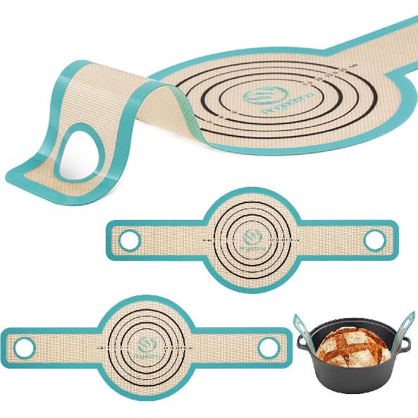 Silicone Bread Sling Dutch Oven - Best Japan Silicone Non-Stick & Easy Clean Reble Baking Mat With Extra Long Handles, Baking Sheet Liner 2 Pcs (Aqua — купить товар онлайн с бесплатной доставкой по всему миру!