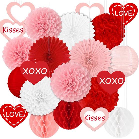 22pcs Valentines Day Party Decorations – Red Pink Paper Fans, Honeycomb Hanging, Tissue Pom Poms Kit for Classroom, Office, Birthday, Galentines