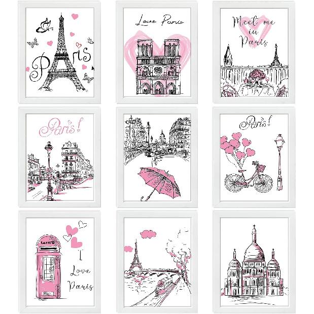 Spakon 9 Pieces Paris Bathroom Decor Paris Theme Wall Art Room Decor Romantic Pink Eiffel Tower Wall Art Bedroom Pictures — купить товар онлайн с бесплатной доставкой по всему миру!
