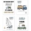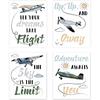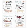 Sweet Jojo Designs Vintage Airplane Wall Art Prints Room Decor for Baby Nursery Kids - Set of 4 - Grey Yellow Orange Red White Blue Airplanes Air