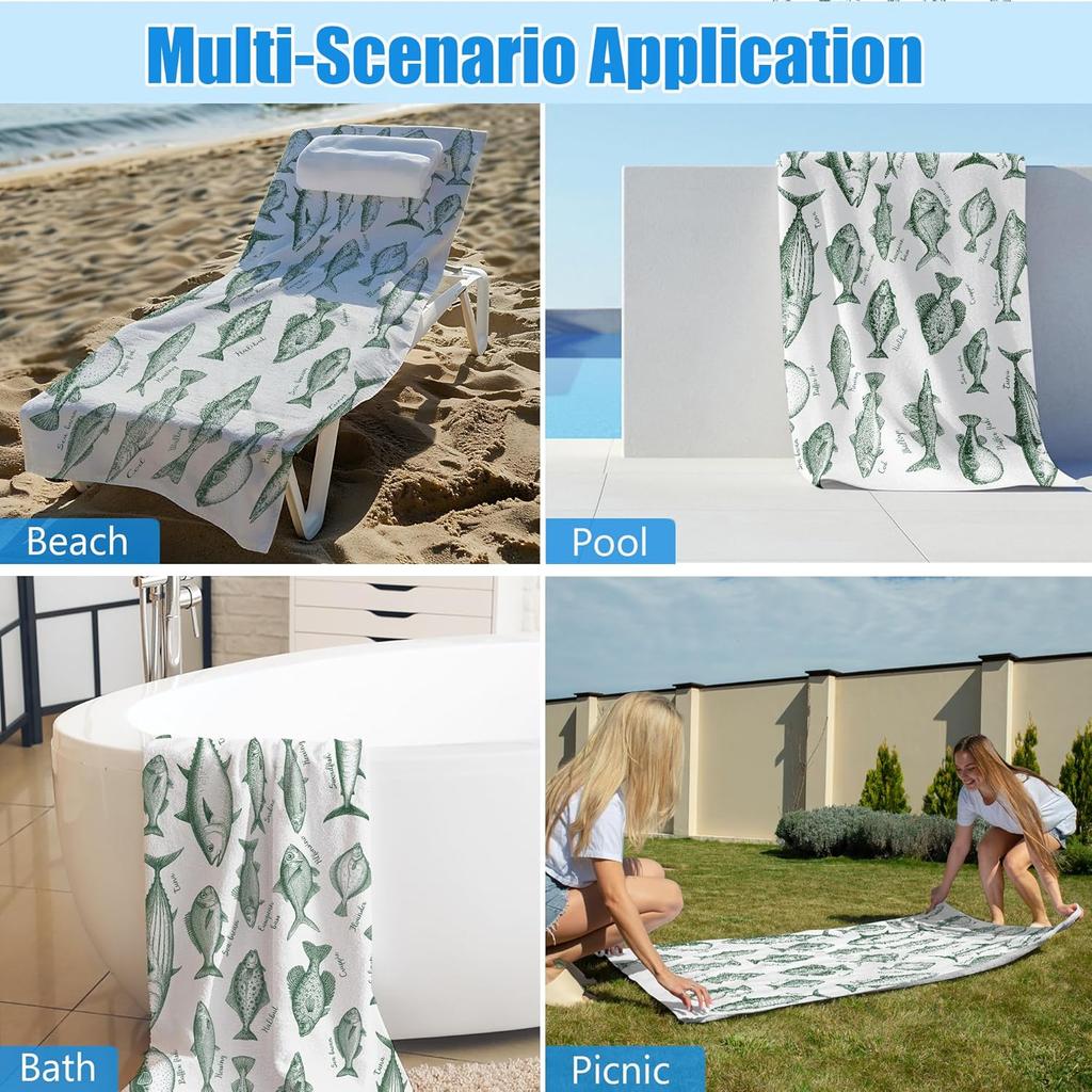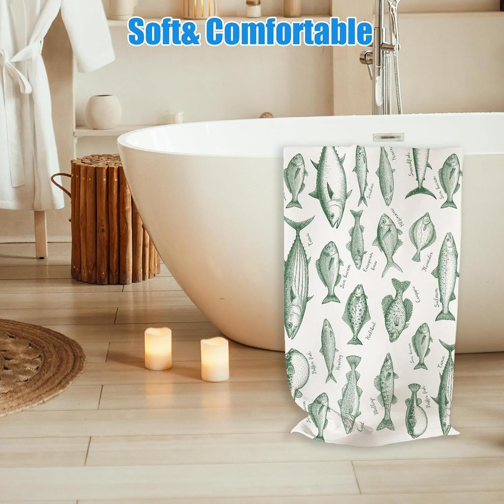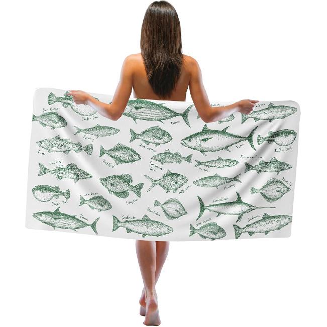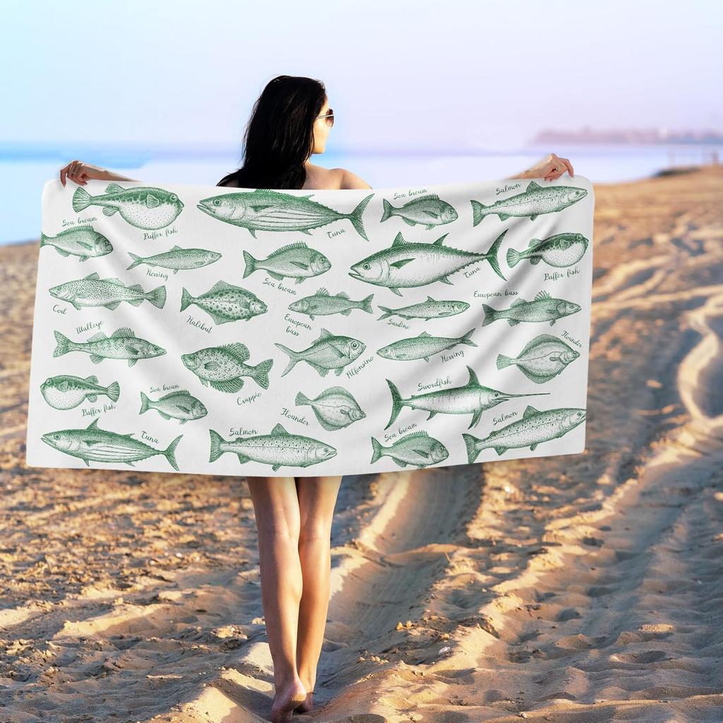 Fish Beach Towel, Boho Fishing Sand Beach Towels Gifts for Men Women Adults, Vintage Green Fish Quick Dry Bath Pool Towels for Bathroom Swimming