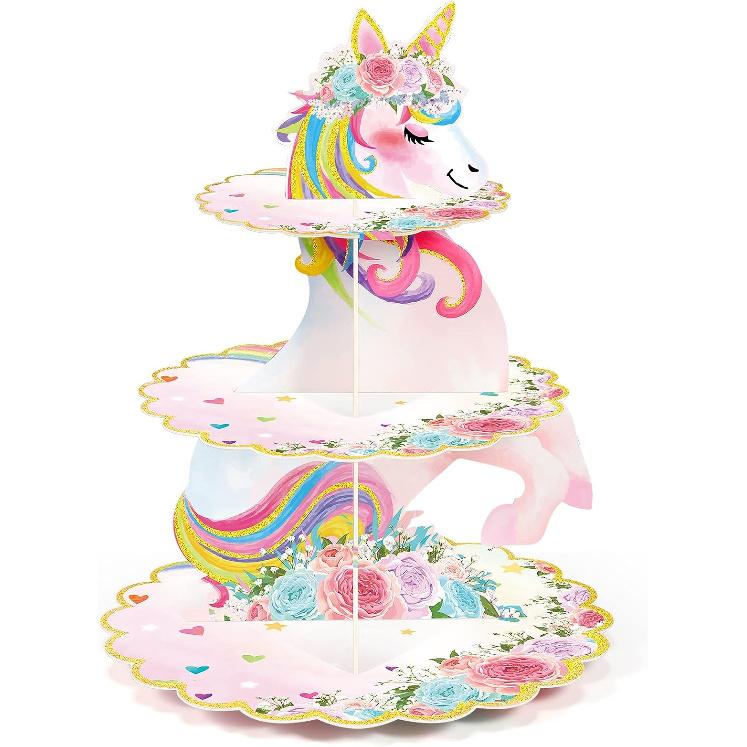 3 Tier Unicorn Cupcake Stand Party Decorations Rainbow Unicorn Birthday Cupcake Holder Dessert Tower for Kids Party Baby Shower Wedding Family, Cute