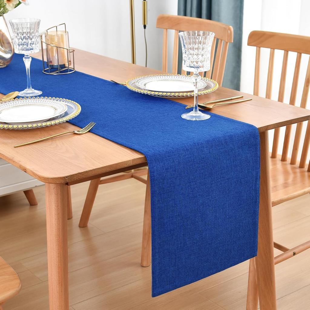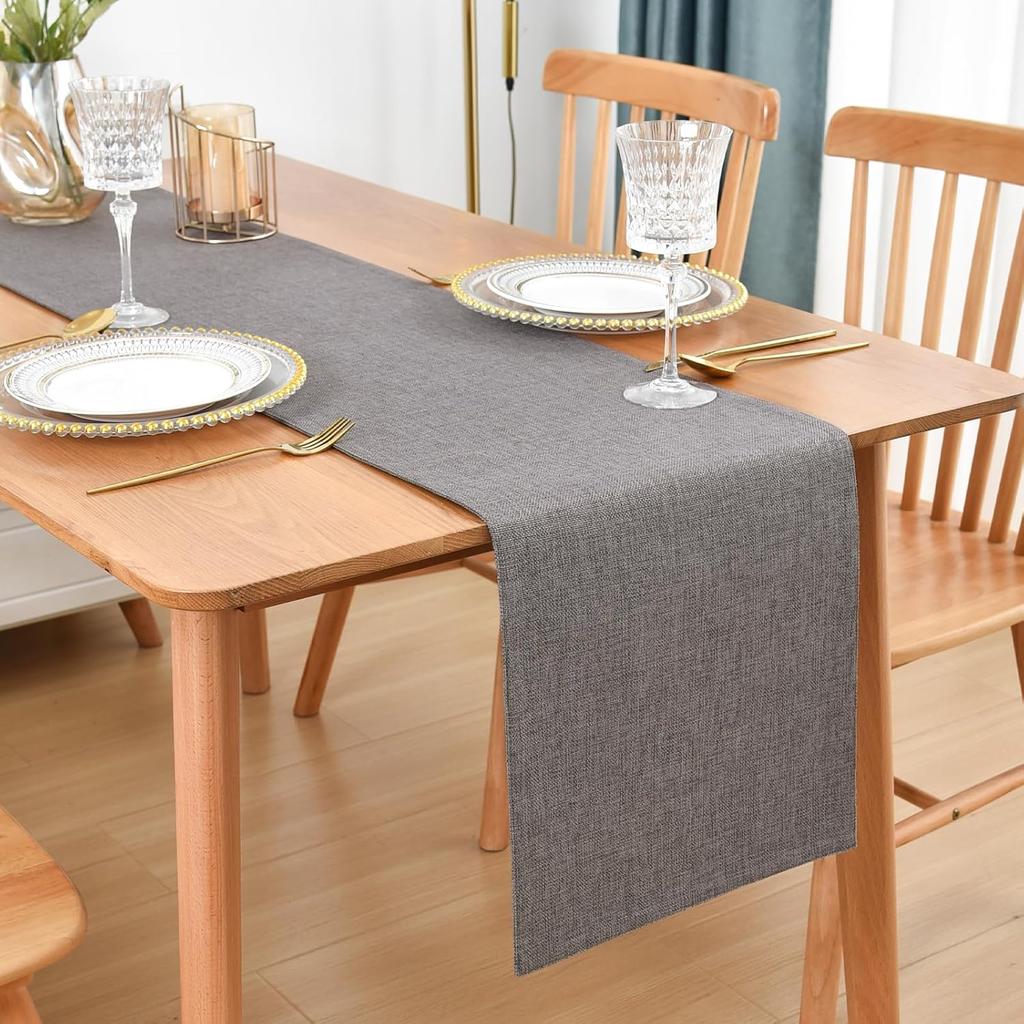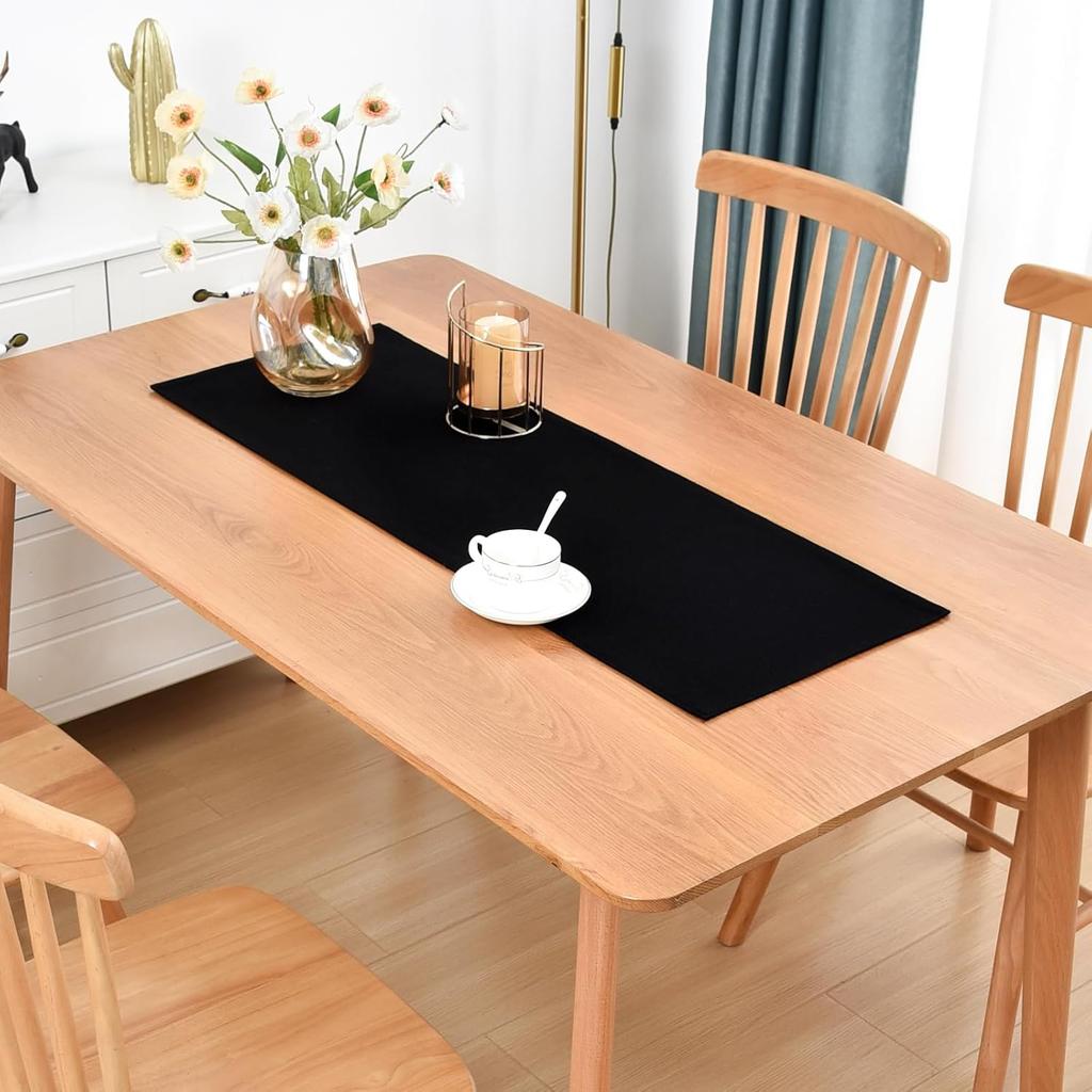 Farmhouse Rustic Table Runner Black Faux Linen Double Layer Table Runners Thick Reversible Short Table Runner 36 inches for Kitchen Dining Dresser